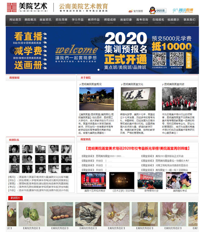 【歷史】昆明美院畫(huà)室美術(shù)培訓(xùn)學(xué)校 ,地處昆明市區(qū),由美院優(yōu)秀團(tuán)隊(duì)創(chuàng)辦于2003年。畫(huà)室具有正規(guī)工商企業(yè)注冊(cè),擁有法人代表,具有辦學(xué)資格認(rèn)證。我校通過(guò)十七年的努力,辛勤耕耘,幾經(jīng)改造、擴(kuò)展,校區(qū)總面積近10000余平方,學(xué)校內(nèi)設(shè)有美術(shù)展覽館、藝教樓、文教樓、辦公樓、美院自助餐廳、美院便利店、女生公寓、男生公寓、教師公寓等設(shè)施采用半封閉式管理,為昆明美術(shù)培訓(xùn)行業(yè)領(lǐng)軍代表之一。畫(huà)社由美院教授、教師、研究生主教,具有17年的教學(xué)經(jīng)驗(yàn)和管理經(jīng)驗(yàn),并出版10余本專業(yè)美術(shù)高考教材,面向全國(guó)發(fā)行。