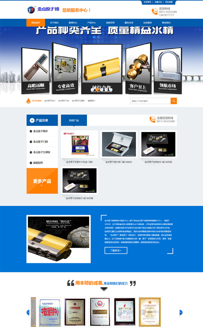 金點(diǎn)原子鎖昆明技術(shù)服務(wù)中心(旗下設(shè)有金點(diǎn)原子鎖昆明營(yíng)銷服務(wù)中心),創(chuàng)建于2005年,位于昆明盤龍區(qū)北辰財(cái)富中心CD商務(wù)樓,公司全面負(fù)責(zé)昆明市主管的國(guó)家重點(diǎn)科技項(xiàng)目:鎖具防盜技術(shù)開啟研究與金點(diǎn)原子高安全鎖具示范工程的研究與開發(fā)。該項(xiàng)目已通過(guò)公安部科技成果鑒定,榮獲30多項(xiàng)國(guó)家發(fā)明專利的100多項(xiàng)實(shí)用新型專利。